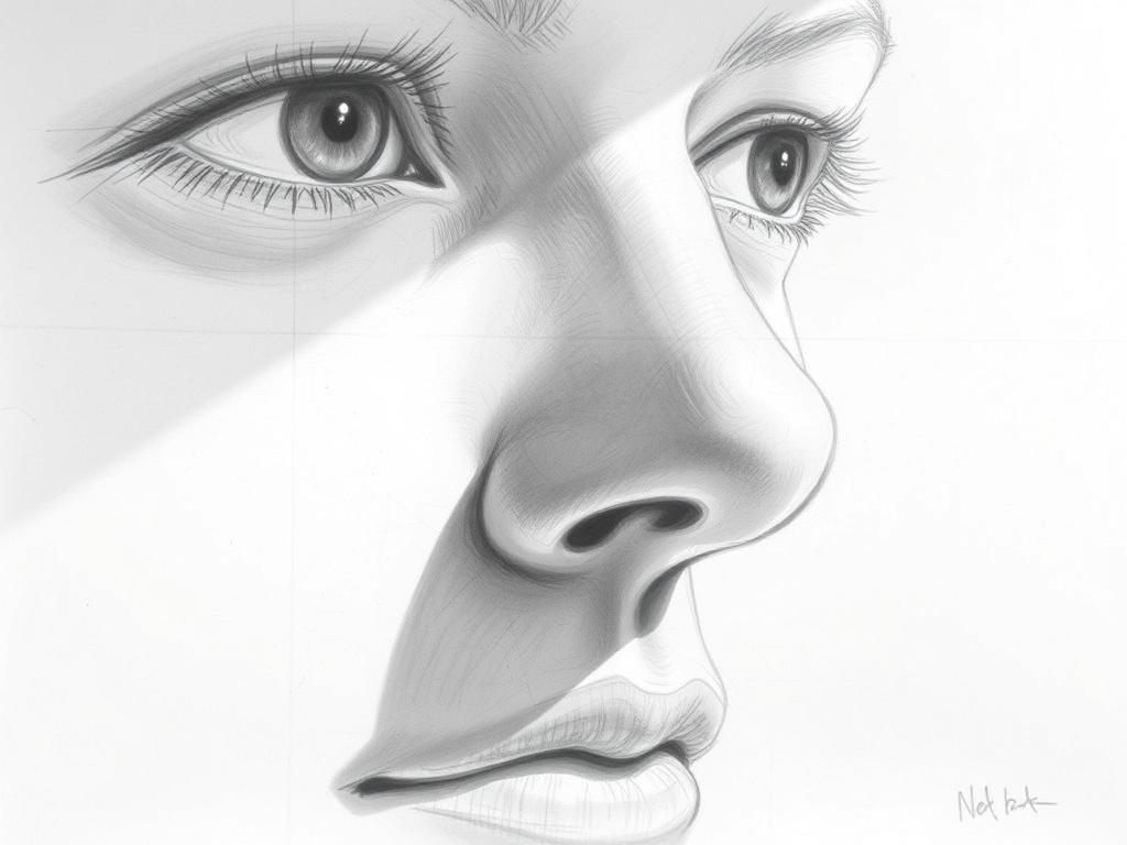 - 5) Финальные детали: аккуратно подчеркните контур ноздрей и колумеллу, добавьте лёгкий световой рефлекс на поверхности носа.