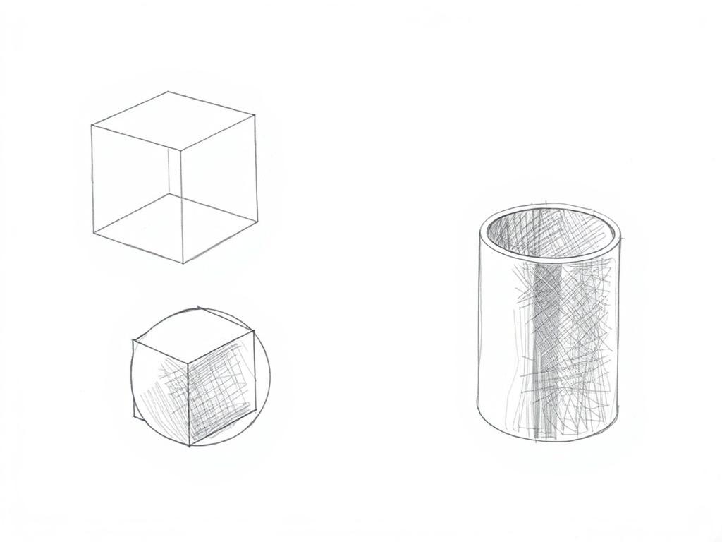 Чтобы сделать композицию выразительной, размещайте куб, шар и цилиндр так, чтобы они перекликались по свету и тени. Придерживайтесь единого направления света, подбирайте пропорции и расстояния между фигурами. Вводите плоскости треугольников и прямых штриховок, чтобы подчеркнуть фактуру поверхности. Не забывайте про паузу между яркими участками — фон может быть чуть темнее или светлее, чем сами фигуры, чтобы они не растворились в плоскости.